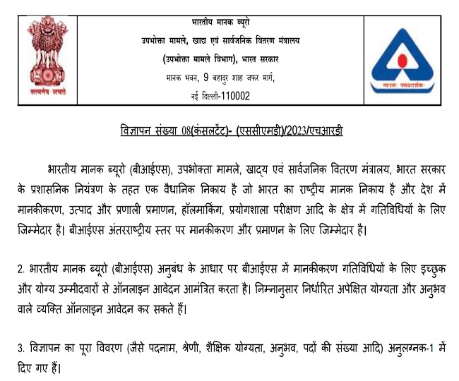BIS Recruitment 2023: भारतीय मानक ब्यूरो में विभिन्न पदों पर भर्ती के लिए आवेदन शुरू, 19 जनवरी तक कर सकते हैं अप्लाई