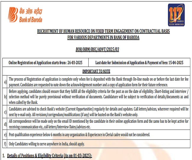 बैंक ऑफ बड़ौदा में प्रोफेशनल पदों पर आवेदन स्टार्ट, ग्रेजुएट युवा ऑनलाइन भर सकते हैं फॉर्म, 15 अप्रैल है लास्ट डेट