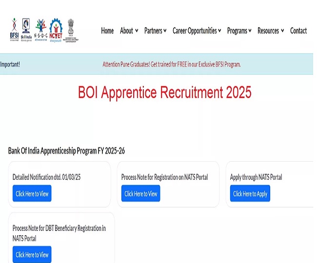 बैंक ऑफ इंडिया अप्रेंटिसशिप भर्ती के लिए एप्लीकेशन डेट एक्सटेंड, ग्रेजुएट अभ्यर्थी अब 28 मार्च तक कर सकते हैं अप्लाई