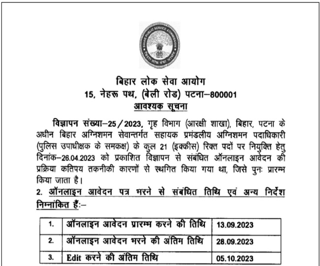 BPSC ADFO Application 2023: बिहार असिस्टेंट डिविजनल फायर ऑफिसर भर्ती परीक्षा के लिए आवेदन आज से शुरू