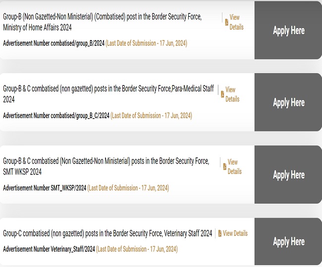 BSF Recruitment 2024: बॉर्डर सिक्योरिटी फोर्स में ग्रुप B व C पदों पर भर्ती के लिए आवेदन स्टार्ट, यहां से करें अप्लाई