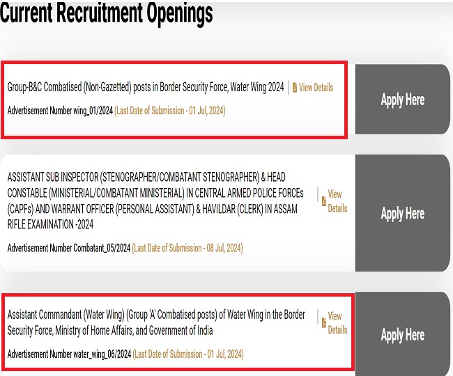 जॉब डेस्क, नई दिल्ली। बॉर्डर सिक्योरिटी फोर्स (BSF) में ग्रुप बी एवं ग्रुप सी के अंतर्गत आने वाले वाटर विंग में एसआई, कॉन्स्टेबल और असिस्टेंट कमांडेंट के रिक्त पदों पर भर्ती चल रही है। इस भर्ती में शामिल होने के लिए आवेदन की अंतिम तिथि 1 जुलाई 2024 तय की गई है। ऐसे में जो अभ्यर्थी किसी कारणवश अभी तक आवेदन नहीं कर सके हैं और इस भर्ती में शामिल होना चाहते उनके पास यह अंतिम मौका है।