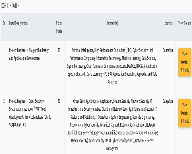 इस भर्ती में भाग लेने के लिए अभ्यर्थी ने पदानुसार बीई/ बीटेक/ पोस्ट ग्रेजुएट डिग्री इन साइंस/ कंप्यूटर एप्लीकेशन/ एमई/ एमटेक/ पीएचडी एवं कुछ पदों के लिए किसी भी स्ट्रीम से ग्रेजुएशन या पोस्ट ग्रेजुएशन किया हो। इसके साथ ही अभ्यर्थी की अधिकतम आयु पदानुसार 35/ 50 साल से ज्यादा नहीं होनी चाहिए। आरक्षित वर्ग को ऊपरी उम्र में नियमानुसार छूट दी जाएगी। पात्रता से जुड़ी विस्तृत डिटेल के लिए अभ्यर्थी एक बार ऑफिशियल नोटिफिकेशन का अवलोकन अवश्य कर लें।