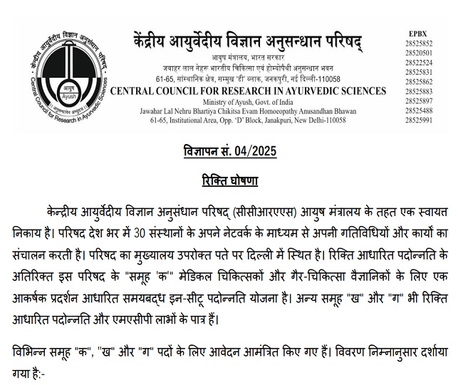 CCRAS Recruitment 2025: सीसीआरएएस भर्ती के लिए आवेदन डेट एक्सटेंड, अब 22 सितंबर तक रहेगा फॉर्म भरने का मौका
