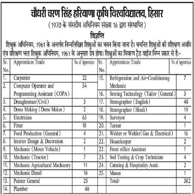 CCS HAU Apprentice 2024: कितने पदों पर होनी है भर्ती
