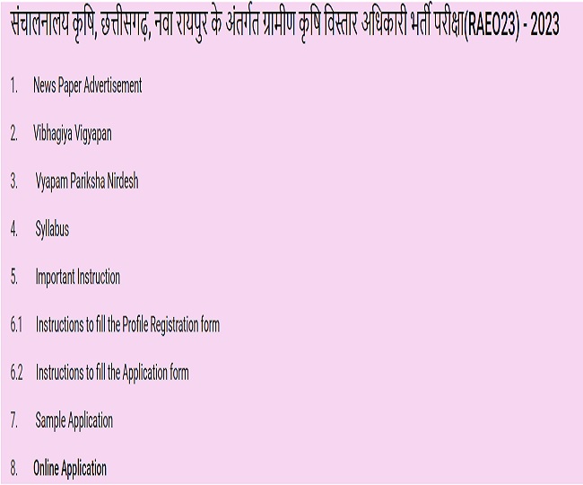 जो उम्मीदवार सरकारी नौकरी की तलाश में है और इस भर्ती के लिए योग्यता रखते हैं वे तुरंत ही ऑफिशियल वेबसाइट vyapam.cgstate.gov.in या इस पेज से एप्लीकेशन फॉर्म भर सकते हैं। आवेदन पत्र भरने की अंतिम तिथि 26 अक्टूबर 2023 निर्धारित है।