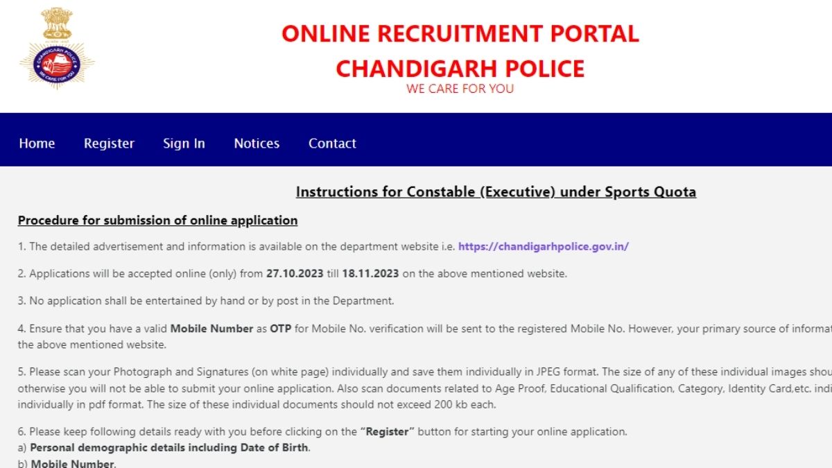 सबसे पहले उम्मीदवारों को आधिकारिक वेबसाइट chandigarhpolice.gov.in पर जाना होगा। इसके बाद,