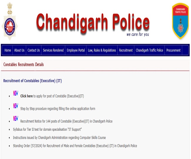 - इस भर्ती में आवेदन करने के लिए सर्वप्रथम उम्मीदवारों को आधिकारिक वेबसाइट chandigarhpolice.gov.in पर विजिट करना होगा।