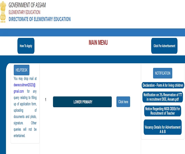 DEE असम शिक्षक भर्ती 2024 आवेदन लिंक