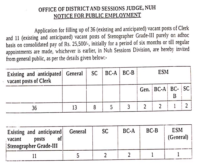 District Court Nuh Vacancy 2024: भर्ती विवरण