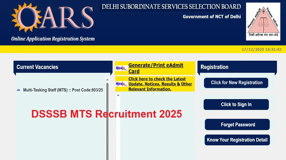 DSSSB MTS Recruitment 2025: दिल्ली में मल्टी टास्किंग स्टाफ के 714 पदों पर आवेदन स्टार्ट, 10th पास कर सकते हैं अप्लाई