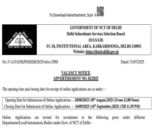 - DSSSB Recruitment 2025 Online Form