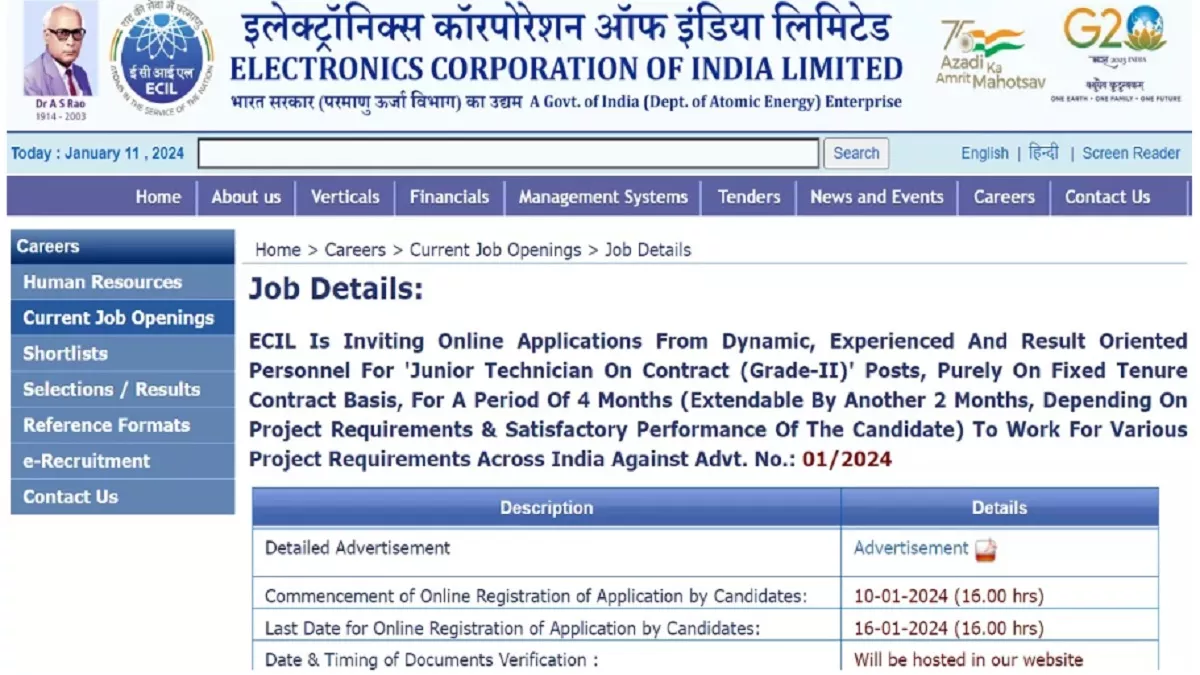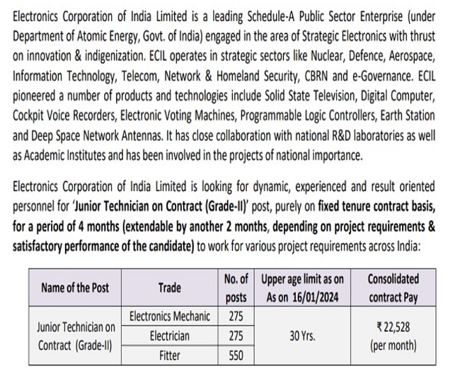 ECIL Recruitment 2024: आज ही करें ईसीआईएल में जूनियर टेक्नीशियन पदों के लिए आवेदन, आखिरी तारीख आज