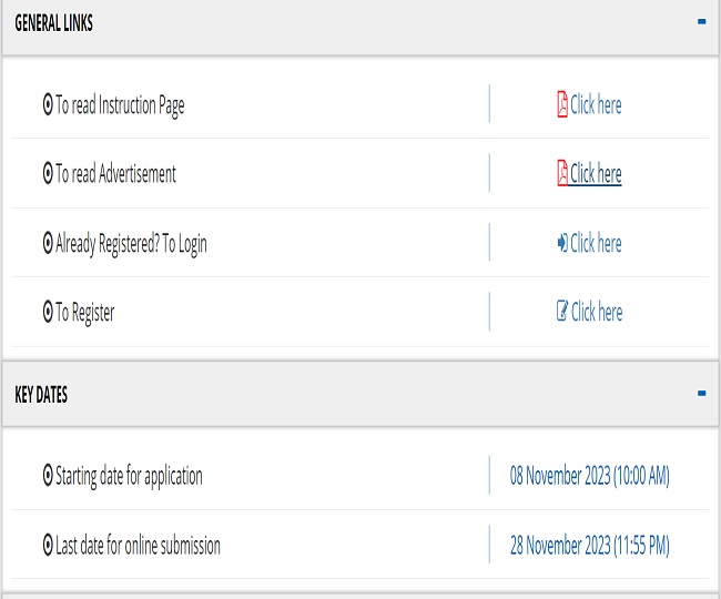 जो उमीदवार इस भर्ती के लिए योग्य हैं वे ऑनलाइन माध्यम से एडसिल की ऑफिशियल वेबसाइट edcilindia.co.in पर जाकर या इस पेज पर उपलब्ध करवाए गए डायरेक्ट लिंक पर क्लिक करके निर्धारित तिथियों में फॉर्म भर सकते हैं। एप्लीकेशन फॉर्म भरने की अंतिम तिथि 28 नवंबर 2023 तय की गयी है।