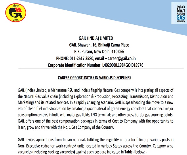 - GAIL Non Executive Recruitment 2024 Application Form Link