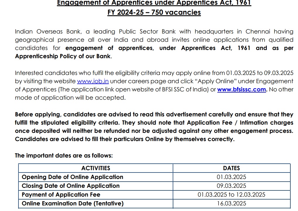 - Indian Overseas Bank Apprentice 2025 Online Form link