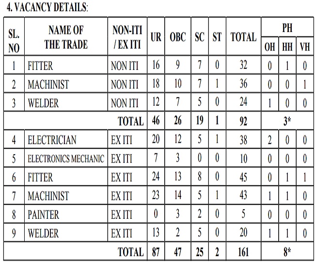 इस भर्ती के माध्यम से कुल 253 रिक्त पदों पर भर्ती की जाएगी। इसमें से नॉन आईटीआई के लिए के लिए कुल 92 पदों पर एवं आईटीआई अप्रेंटिसशिप के 161 पदों पर नियुक्तियां की जानी है। भर्ती से जुड़ी विस्तृत डिटेल के लिए अभ्यर्थी आधिकारिक अधिसूचना का अवलोकन कर सकते हैं।