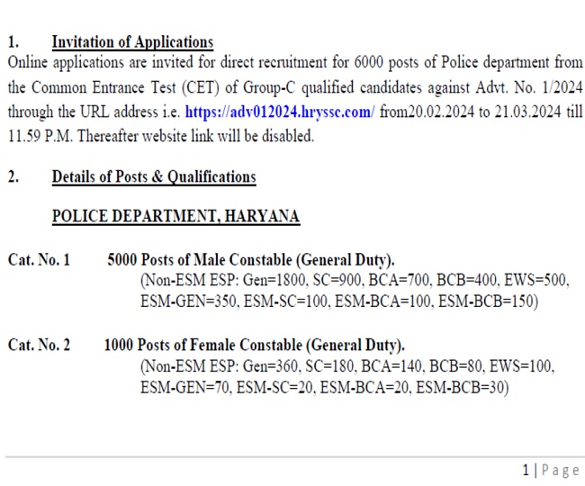 हरियाणा पुलिस में 6000 कॉन्स्टेबल (GD) की भर्ती अधिसूचना HSSC ने जारी की, 20 फीसदी पद महिलाओं के लिए आरक्षित