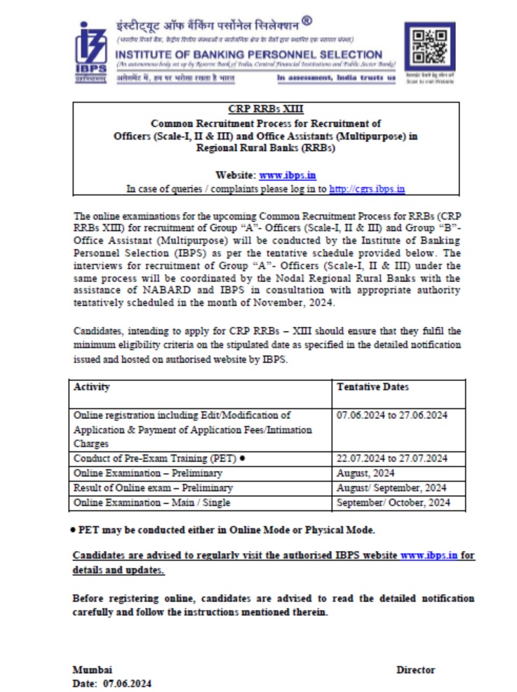 - IBPS RRB CRP XIII 2024 अधिसूचना लिंक