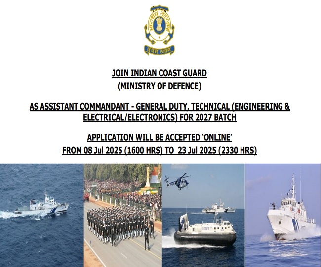 इंडियन कोस्ट गार्ड असिस्टेंट कमांडेंट बैच 2027 के लिए ऑनलाइन आवेदन स्टार्ट, जल्द करें अप्लाई, योग्यता सहित अन्य डिटेल यहां से करें चेक