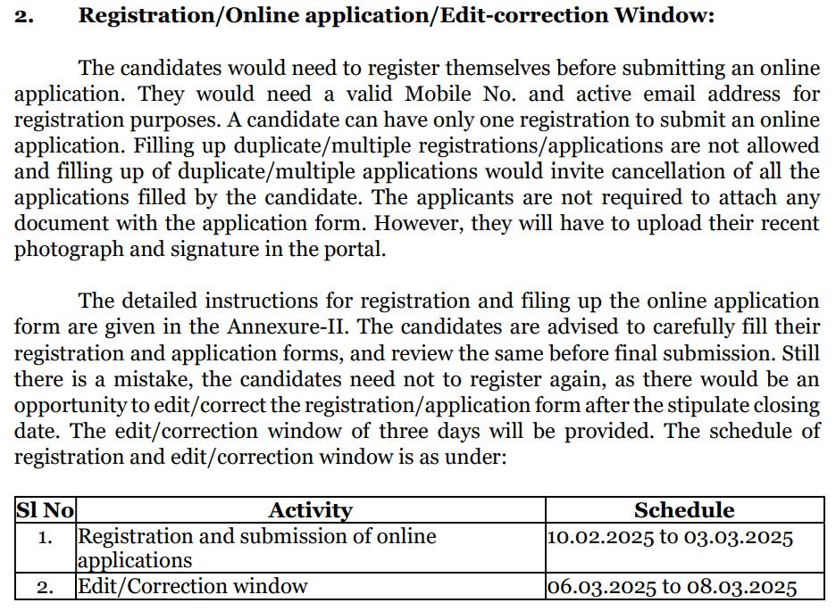 एप्लीकेशन फॉर्म भरते समय अगर अभ्यर्थी से गलती हो जाती है तो वे 6 मार्च से लेकर 8 मार्च 2025 तक फॉर्म में संशोधन कर पाएंगे।