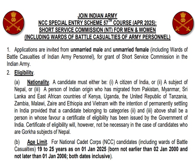 Indian Army Recruitment 2024: भारतीय सेना में एनसीसी एंट्री स्कीम 57th के लिए आवेदन शुरू, 76 रिक्त पदों पर होनी है भर्तियां