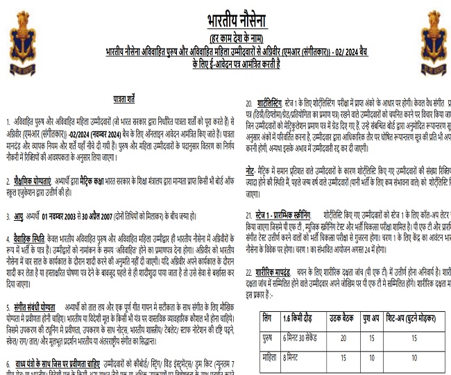 Indian Navy Musician Recruitment 2024: भारतीय नौसेना में एमआर-म्यूजिशियन पदों पर भर्ती का एलान, आवेदन 1 जुलाई से