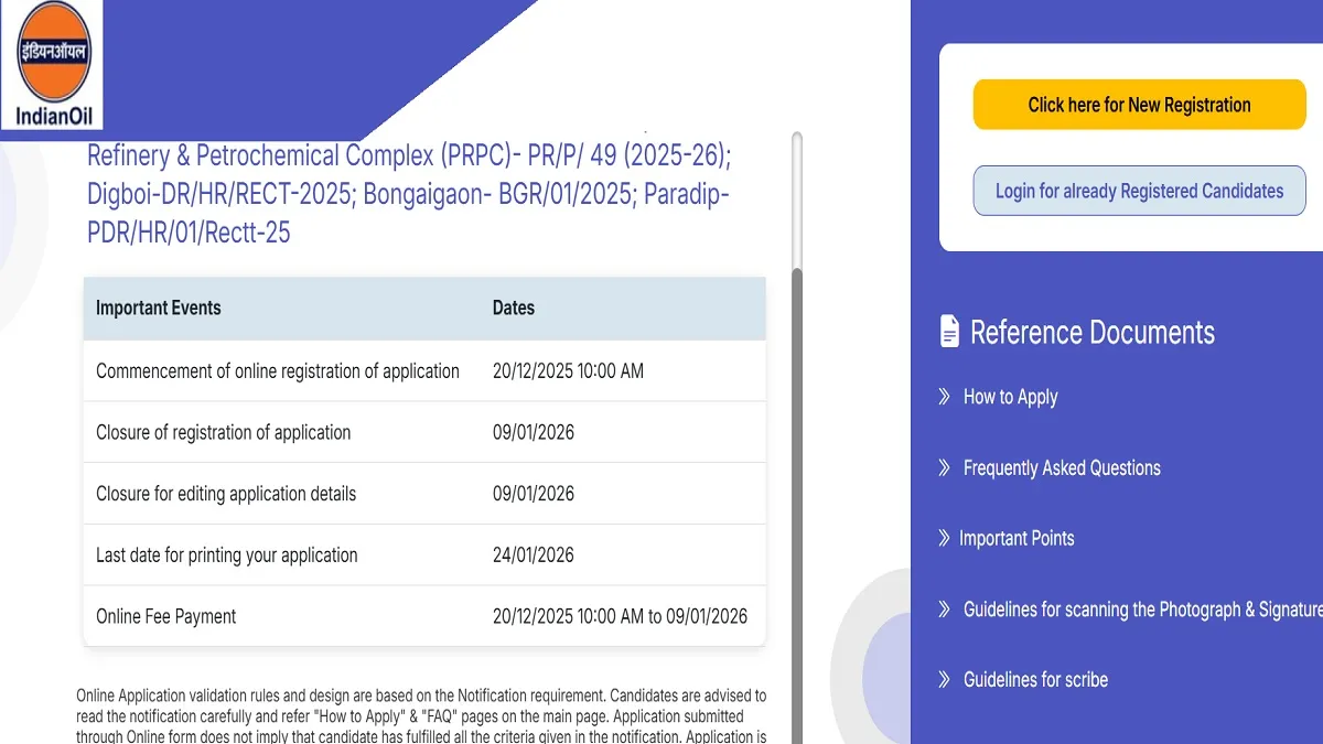 जॉब डेस्क, नई दिल्ली। सरकारी नौकरी की तलाश कर रहे युवाओं के लिए खुशखबरी है। इंडियन ऑयल में नॉन एग्जीक्यूटिव पर्सनल के रिक्त पदों पर भर्ती निकाली गई है जिसके लिए आवेदन प्रक्रिया 20 दिसंबर से स्टार्ट की गई है। जो भी अभ्यर्थी इस भर्ती के लिए पात्रता पूरी करते हैं वे ऑनलाइन माध्यम से भर्ती में शामिल होने के लिए ऑफिशियल वेबसाइट iocl.com पर जाकर या इस पेज से आवेदन कर सकते हैं। फॉर्म भरने की लास्ट डेट 9 जनवरी 2026 निर्धारित की गई है।