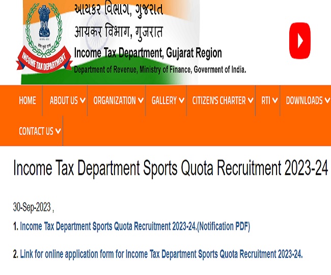 - वेबसाइट के होम पेज पर "Income Tax Department Sports Quota Recruitment 2023-24" लिंक पर क्लिक करें।