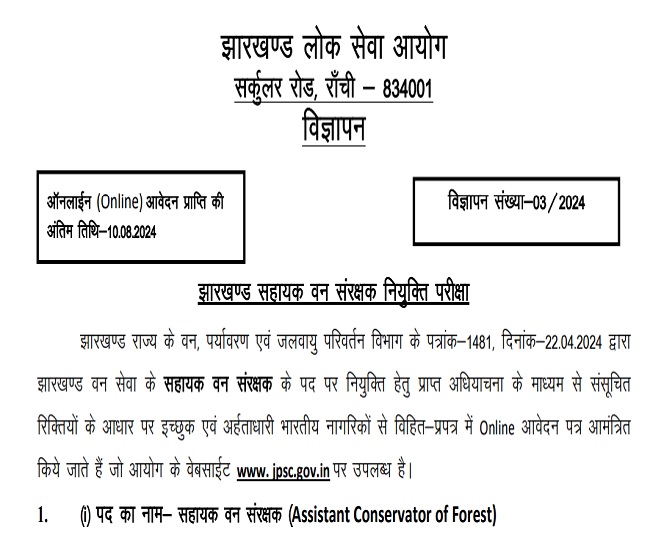 JPSC Recruitment 2024: झारखंड सहायक वन संरक्षक पदों के लिए आवेदन आज से शुरू, 10 अगस्त तक कर सकते हैं अप्लाई