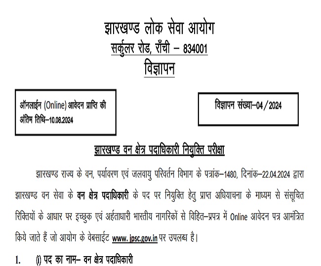 JPSC Recruitment 2024: झारखंड फॉरेस्ट रेंज ऑफिसर के 170 पदों के लिए शुरू हुए आवेदन, ये रही भर्ती डिटेल