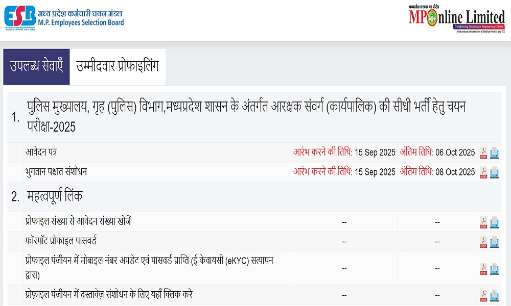 जॉब डेस्क, नई दिल्ली। मध्य प्रदेश में पुलिस कॉन्स्टेबल के 7500 रिक्त पदों को भरने के लिए भर्ती हो रही है। इस भर्ती के लिए आवेदन की लास्ट डेट आज यानी 6 अक्टूबर 2025 निर्धारित है। ऐसे में जो अभ्यर्थी अभी तक किसी कारणवश फॉर्म नहीं भर सके हैं वे बिना देरी करते हुए MPESB की ऑफिशियल वेबसाइट esb.mp.gov.in पर जाकर तुरंत आवेदन कर सकते हैं। आज के बाद एप्लीकेशन विंडो क्लोज कर दी जाएगी।