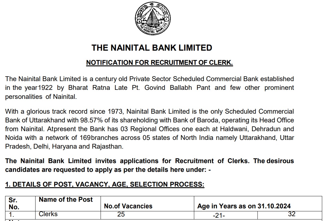 Nainital Bank Recruitment: नैनीताल बैंक में क्लर्क पदों पर भर्ती का एलान, स्नातक उत्तीर्ण अभ्यर्थी कर सकते हैं अप्लाई