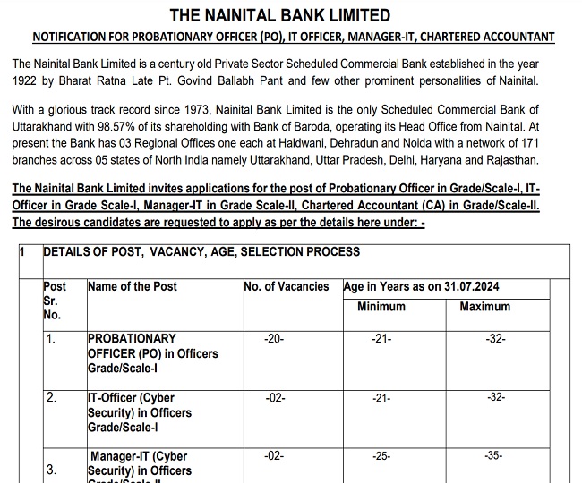नैनीताल बैंक में प्रोबेशनरी ऑफिसर समेत कई पदों पर निकली भर्ती, 31 अगस्त तक कर सकते हैं अप्लाई