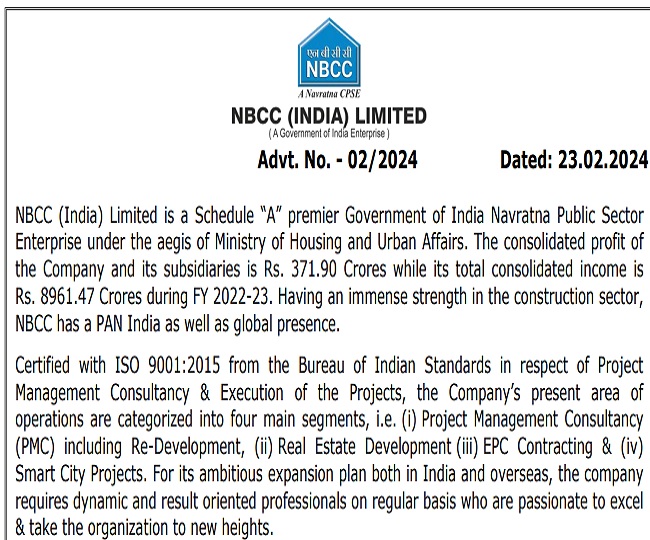 - NBCC Recruitment 2024 Application Form- डायरेक्ट लिंक