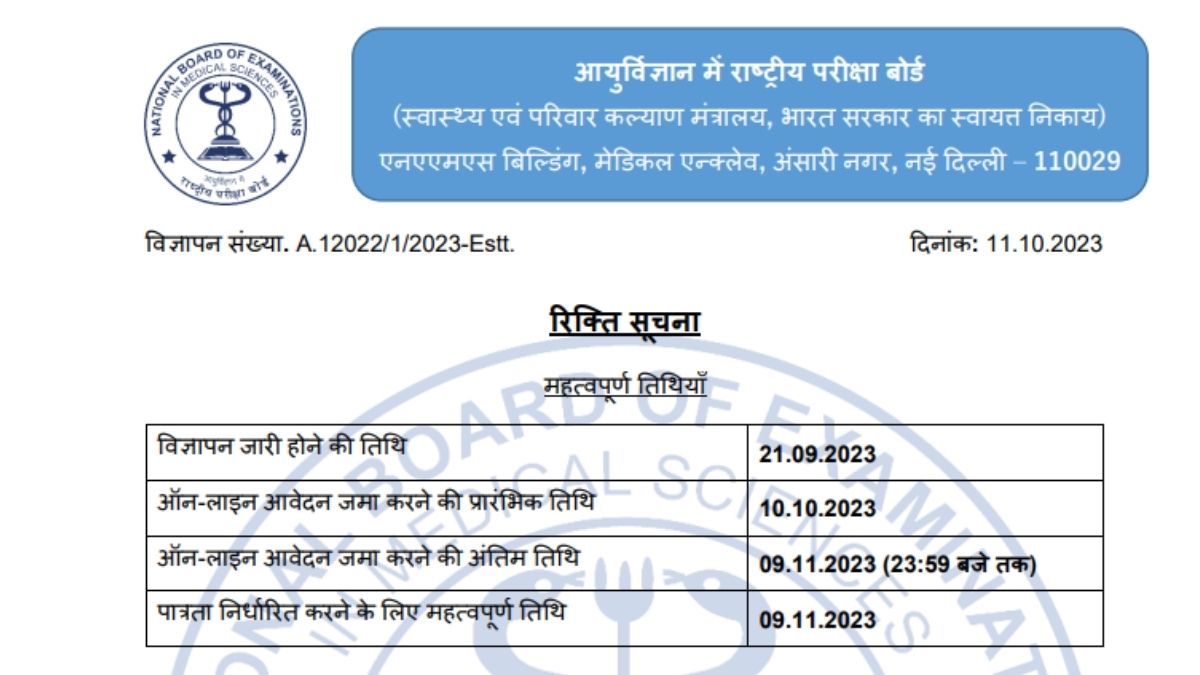 NBEMS Recruitment 2023: एनबीईएमएस ने लॉ ऑफिसर सहित अन्य पदों पर निकाली भर्ती, 9 नवंबर तक करें आवेदन