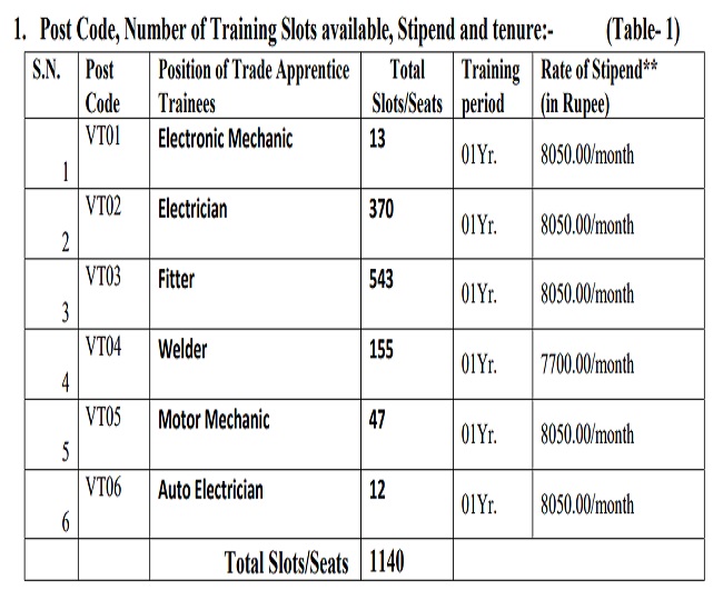 इस भर्ती में आवेदन करने के लिए उम्मीदवारों ने मैट्रिकुलेशन/ 10+2 के साथ ही निर्धारित ट्रेड में आईटीआई सर्टिफिकेट प्राप्त किया हो। इसके साथ ही अभ्यर्थी की न्यूनतम आयु 18 वर्ष एवं अधिकतम आयु 26 वर्ष से अधिक नहीं होनी चाहिए। ऊपरी आयु सीमा में छूट नियमानुसार प्रदान की जाएगी।