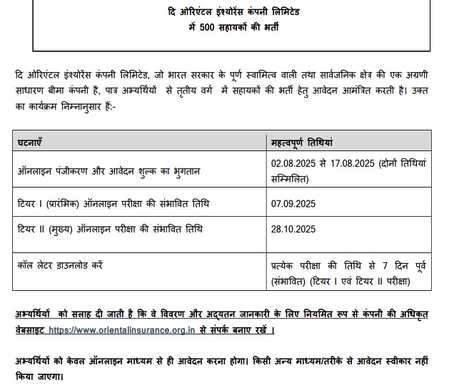 OICL Assistant Recruitment 2025: द ओरियंटल इंश्योरेंश कंपनी में असिस्टेंट पदों पर आवेदन स्टार्ट, ग्रेजुएट युवा कर सकते हैं अप्लाई
