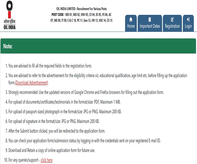 जो भी उम्मीदवार इस भर्ती में शामिल होना चाहते हैं वे निर्धारित तिथियों में ऑयल इंडिया की ऑफिशियल वेबसाइट oil-india.com पर जाकर या इस पेज पर दिए गए डायरेक्ट लिंक पर क्लिक करके आवेदन प्रक्रिया पूर्ण कर सकते हैं।