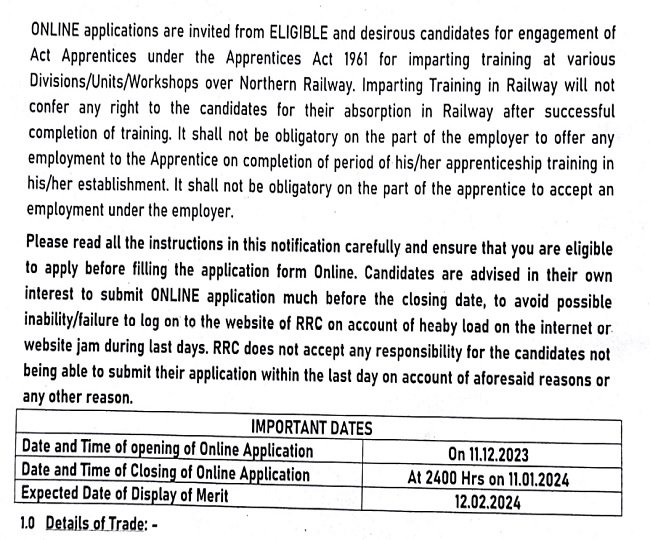 RRC NR Apprentice 2023 Notification डाउनलोड करने के लिए यहां क्लिक करें।