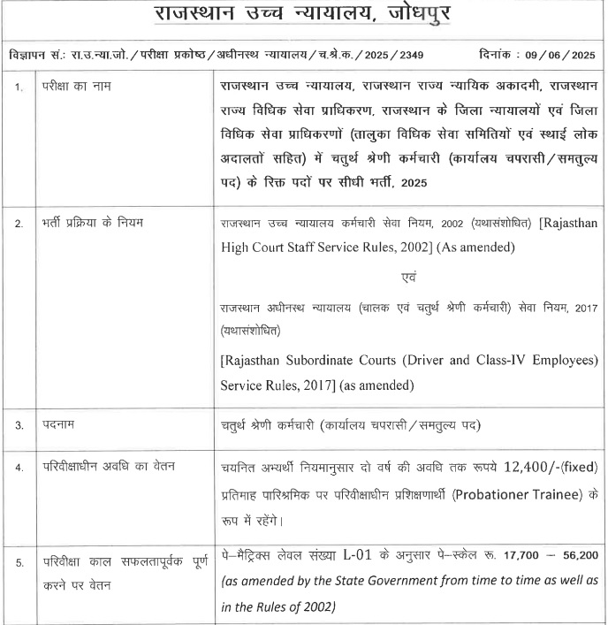 Rajasthan High Court Vacancy 2025: राजस्थान हाई कोर्ट में 4th क्लास के बंपर पदों पर भर्ती का एलान, 27 जून तक भर सकते हैं फॉर्म