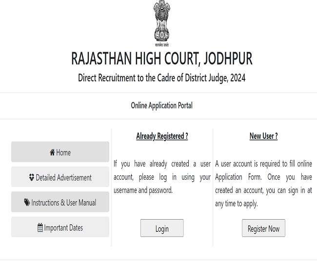 - डिस्ट्रिक्ट जज पदों पर आवेदन के लिए उम्मीदवारों को सबसे पहले आधिकारिक वेबसाइट hcraj.nic.in/hcraj/ पर जाना होगा।