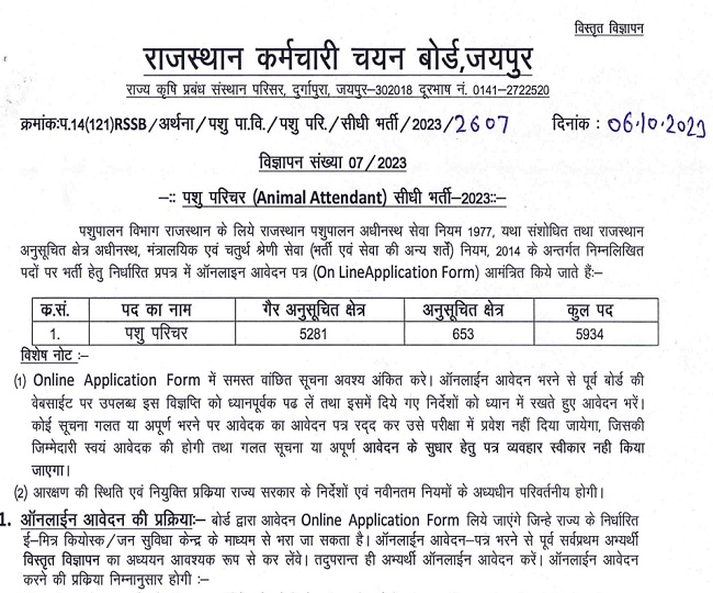 RSMSSB Recruitment 2023: आज से करें राजस्थान में 5934 पशु परिचर के पदों पर भर्ती के लिए आवेदन, ये रहा लिंक