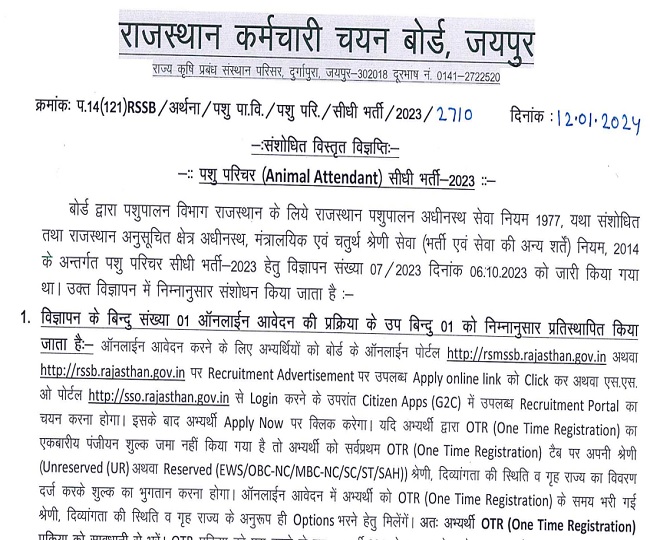 RSMSSB Recruitment 2024: राजस्थान में एनिमल अटेंडेंट के 6 हजार पदों पर पुनः शुरू होंगे आवेदन, 19 जनवरी से कर सकेंगे अप्लाई