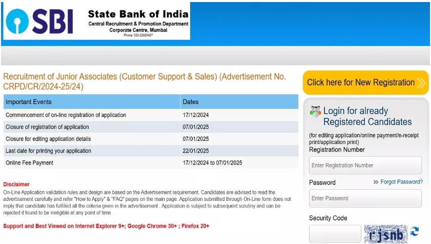 जॉब डेस्क, नई दिल्ली। स्टेट बैंक ऑफ इंडिया (SBI) की ओर से क्लर्क (Junior Associates- Customer Support Sales) के 13 हजार से अधिक पदों पर भर्ती हो रही है। इस भर्ती में शामिल होने के लिए आवेदन की लास्ट डेट आज यानी 7 जनवरी 2025 निर्धारित है। ऐसे में जो अभ्यर्थी स्नातक उत्तीर्ण हैं और सरकारी नौकरी की तलाश में हैं उनके पास सुनहरा मौका है। इच्छुक एवं पात्र अभ्यर्थी बिना देरी करते हुए एसबीआई की ऑफिशियल वेबसाइट sbi.co.in पर जाकर या इस पेज पर दिए डायरेक्ट लिंक पर क्लिक करके ऑनलाइन फॉर्म भर सकते हैं।