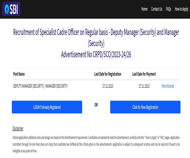 जो उम्मीदवार इस भर्ती के लिए योग्यता रखते हैं वे तुरंत ही एसबीआई की ऑफिशियल वेबसाइट sbi.co.in पर जाकर फॉर्म भर सकते हैं। इसके अलावा आप इस पेज पर उपलब्ध करवाए गए डायरेक्ट लिंक पर क्लिक करके भी आवेदन कर सकते हैं। आवेदन करने की अंतिम तिथि 27 नवंबर 2023 निर्धारित की गयी है।