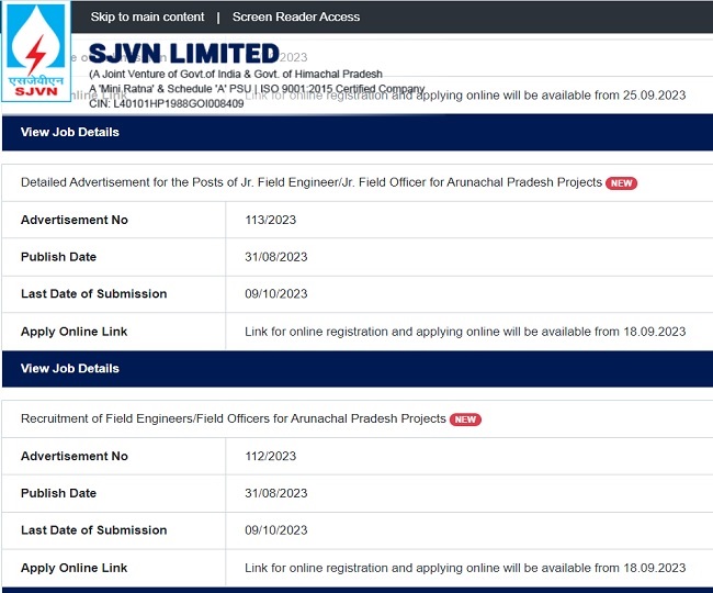 SJVN Recruitment 2023: इस मिनीरत्न कंपनी में 308 सरकारी नौकरियों के लिए आवेदन आज से, ये रहा आवेदन लिंक