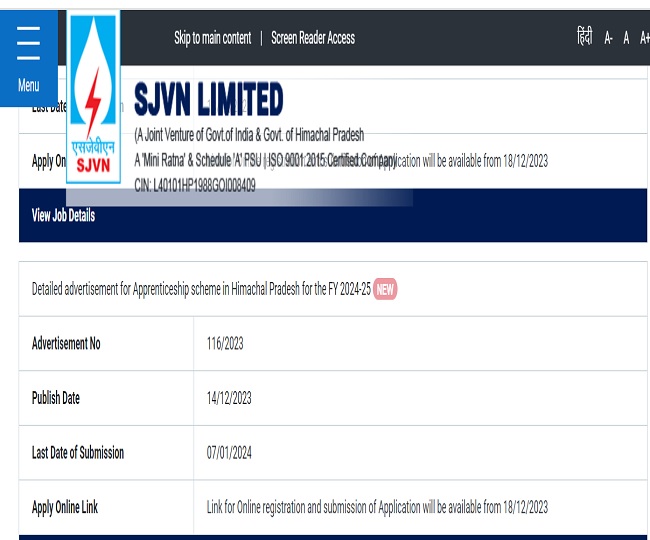 SJVN Recruitment 2024: एसजेवीएन लिमिटेड में ग्रेजुएट एवं टेक्नीशियन पदों पर अप्रेंटिसशिप का मौका, कल से करें अप्लाई