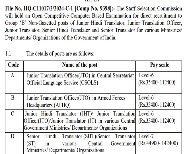 SSC JHT 2024: एसएससी ने जूनियर एवं सीनियर हिंदी ट्रांसलेटर सहित अन्य पदों के लिए शुरू किये आवेदन, यहां से करें अप्लाई