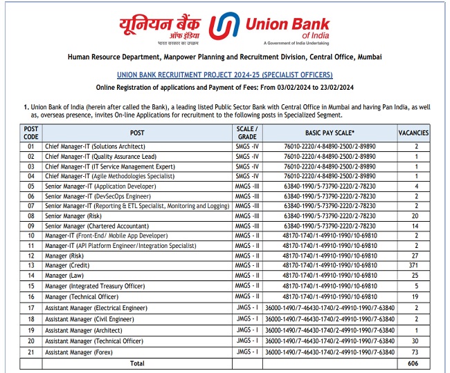 UBI SO Recruitment 2024: आज ही करें यूनियन बैंक में 606 स्पेशलिस्ट ऑफिसर भर्ती के लिए आवेदन, ऐसे करें अप्लाई
